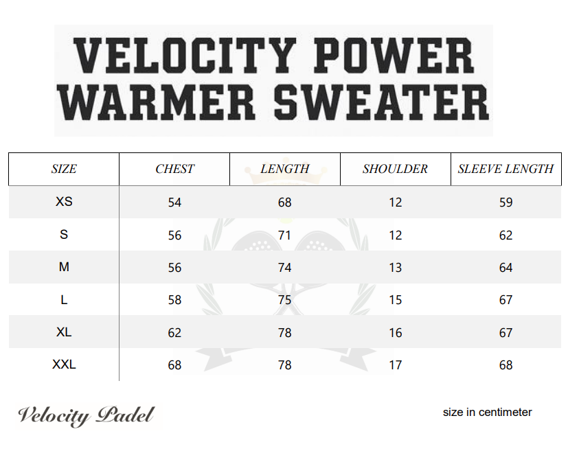 Upgrade your athletic wear with our Velocity Power Warmer Sweater. Made from high-quality material, this sweater offers both comfort and style. Perfect for workouts or casual wear, it's a must-have for any wardrobe. Stay cool and stylish with our premium sweat shirt.